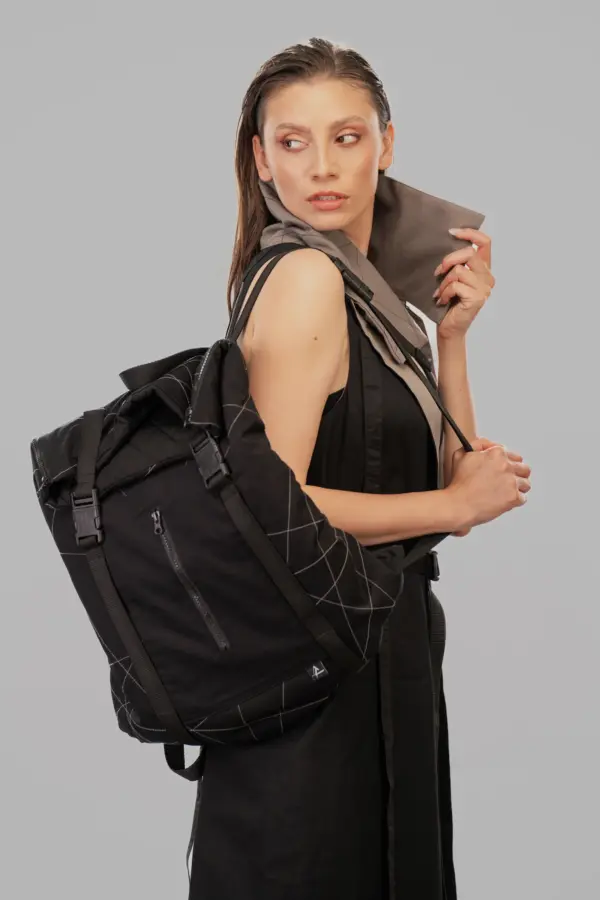 Select options This product has multiple variants. The options may be chosen on the product page Quick View299,00 €The CONTRAPUNCT unisex quilted topstitched backpack embodies a fusion of functionality and futuristic aesthetics. Crafted with a quilted black exterior featuring white topstitches, this design emphasizes both texture and structure. The backpack includes black straps designed for additional utility, allowing for attachments or customization. A zippered front pocket offers accessible […]