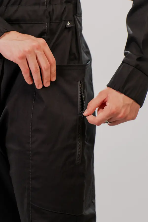 The CONTRAPUNCT pocket attached quilted vest merges utilitarian function with structural detailing. The black cotton body is defined by bold white cross topstitching, while the interior is crafted from quilted cotton for added warmth and comfort. A grey zipped pocket is attached at the waist, anchored only at the upper edge for a floating effect. Two additional open side pockets are seamlessly integrated into the design. A separate plastic buckle belt is threaded through the waist, serving as a base for two removable pockets – one beige flap pocket at the front and one grey zipped pocket at the back – offering both functional storage and modular styling. Consistent with the brand’s design philosophy, the CONTRAPUNCT branding label is prominently placed on the exterior of the garment, ensuring visibility and reinforcing the brand’s signature style